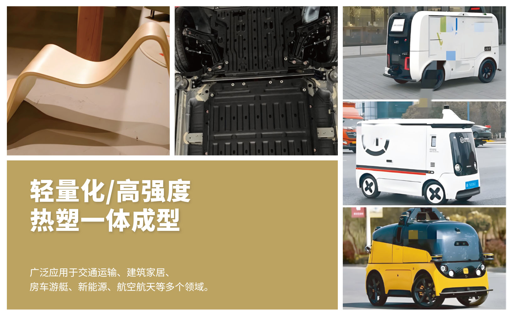 高保温性能,车厢减重15%以上,降低油耗和运营成本。适用于冷链箱车、无人快递车等,提升续航里程20%,助力智慧物流。