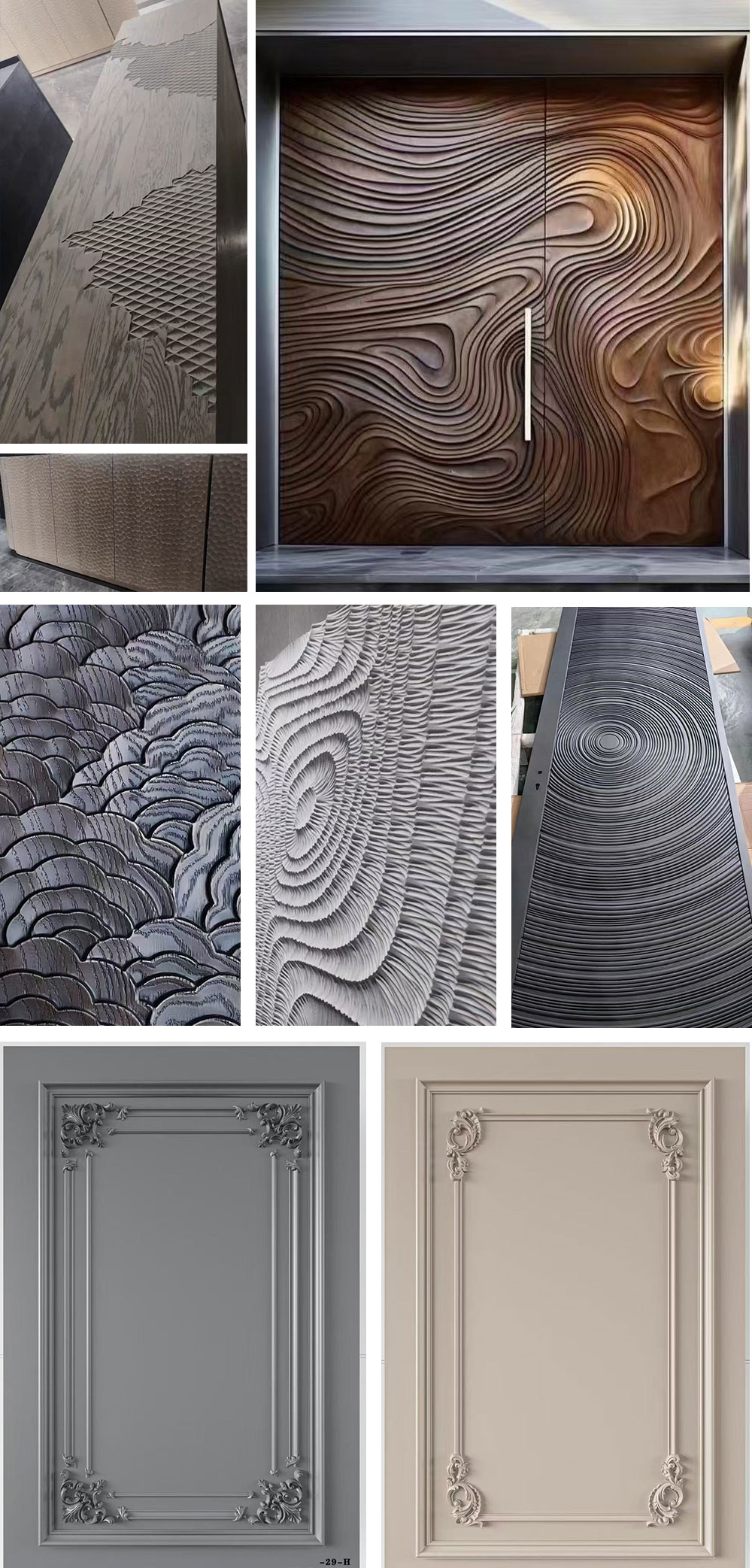 采用无漆饰面工艺,通过与饰面贴合实现仿木纹、石纹等纹理。
